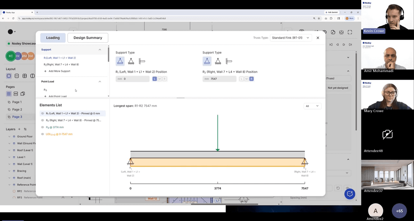 Because Nodey keeps the drawings, analysis, and documentation connected, updates flow through the entire project instantly. If a wall moves or a span changes, the affected members, calculations, and reports adjust in real time.